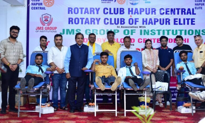 हापुड़, 28 अगस्त 2025 — “रक्तदान करें, जीवन बचाएं” के प्रेरणादायक संदेश को साकार करते हुए रोटरी क्लब हापुड़ सेंट्रल व रोटरी क्लब हापुड़ ईलाइट द्वारा आयोजित विशाल रक्तदान शिविर और थैलासीमिया स्क्रीनिंग कैंप में जनसहभागिता का अद्भुत दृश्य देखने को मिला। इस पुनीत कार्य में जे०एम०एस० ग्रुप ऑफ़ इंस्टीटूशन्स, हापुड़ ने न केवल सक्रिय भागीदारी निभाई, बल्कि आयोजन को सफल बनाने में महत्वपूर्ण भूमिका भी अदा की।