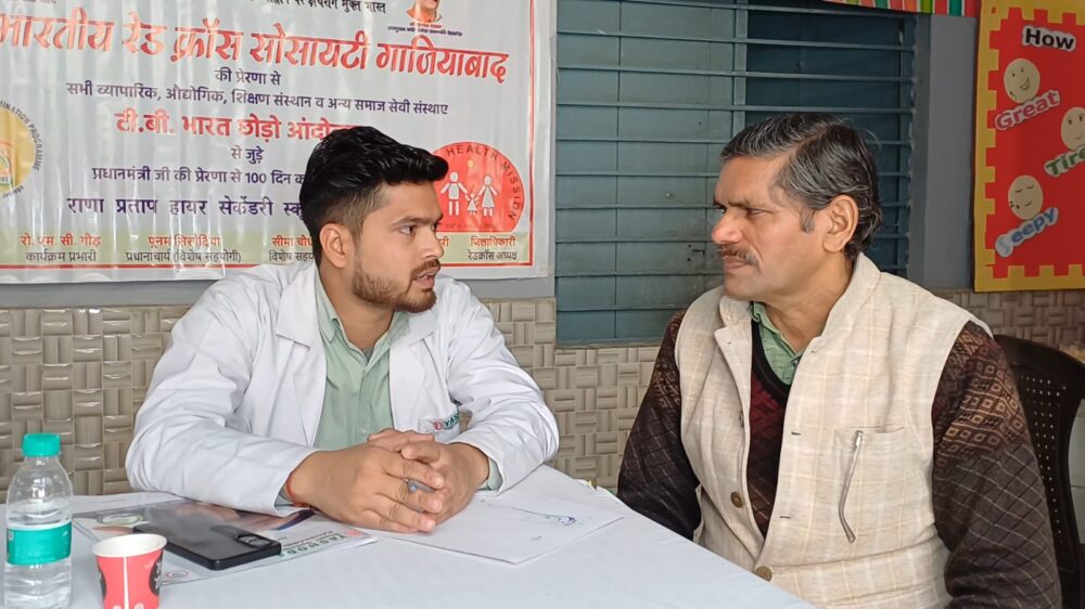 गाजियाबाद। प्रधानमंत्री नरेंद्र मोदी के आह्वान पर टीबी मुक्त भारत अभियान के समर्थन में चल रहे 100 दिवसीय सघन अभियान की सार्थकता को आगे बढ़ाते हुए भारतीय रेड क्रॉस सोसायटी, गाजियाबाद द्वारा लोहिया नगर स्थित राणा प्रताप हायर सेकेंडरी स्कूल में एक निःशुल्क स्वास्थ्य जांच शिविर का आयोजन किया गया।