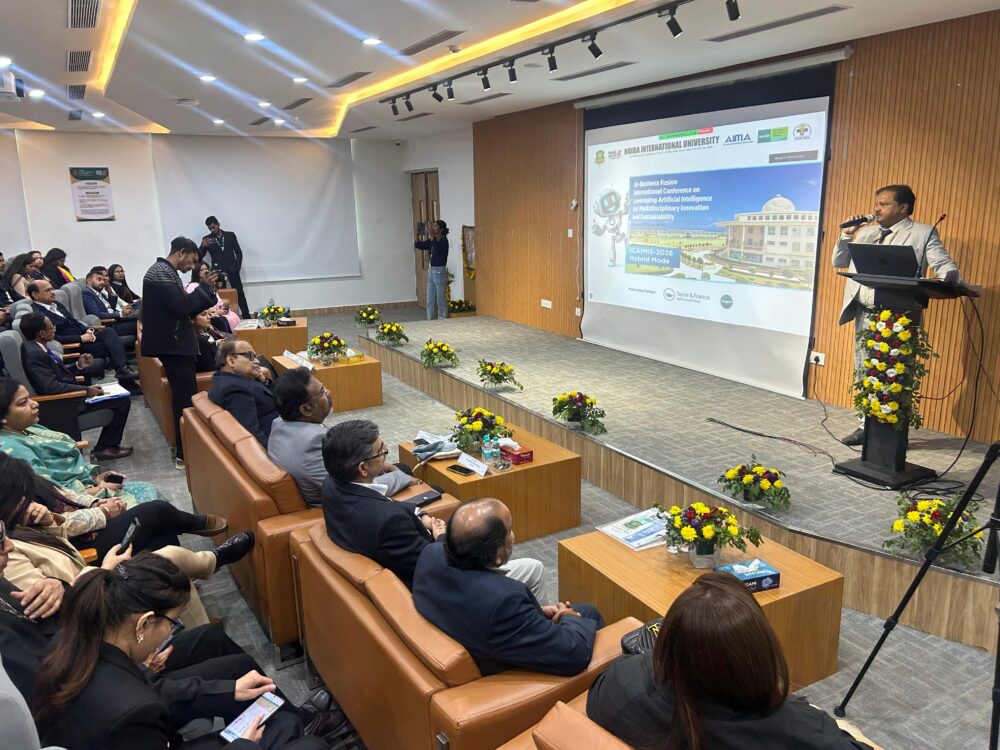 नोएडा। नोएडा इंटरनेशनल यूनिवर्सिटी के स्कूल ऑफ़ बिज़नेस मैनेजमेंट द्वारा 23–24 जनवरी 2026 को मिश्रित माध्यम (ऑनलाइन एवं ऑफलाइन माध्यम) में “कृत्रिम बुद्धिमत्ता–व्यवसाय समन्वय: बहुविषयक नवाचार एवं सततता हेतु कृत्रिम बुद्धिमत्ता का उपयोग (आईसीआईएमआईएस–2026)” विषय पर दो दिवसीय अंतरराष्ट्रीय सम्मेलन का सफलतापूर्वक आयोजन किया गया। यह सम्मेलन शिक्षाविदों, उद्योग जगत के विशेषज्ञों, नीति–निर्माताओं तथा शोधकर्ताओं के लिए एक वैश्विक मंच के रूप में आयोजित किया गया, जिसमें नवाचार, सतत विकास और समावेशी प्रगति को आगे बढ़ाने में कृत्रिम बुद्धिमत्ता की भूमिका पर व्यापक विचार–विमर्श किया गया।